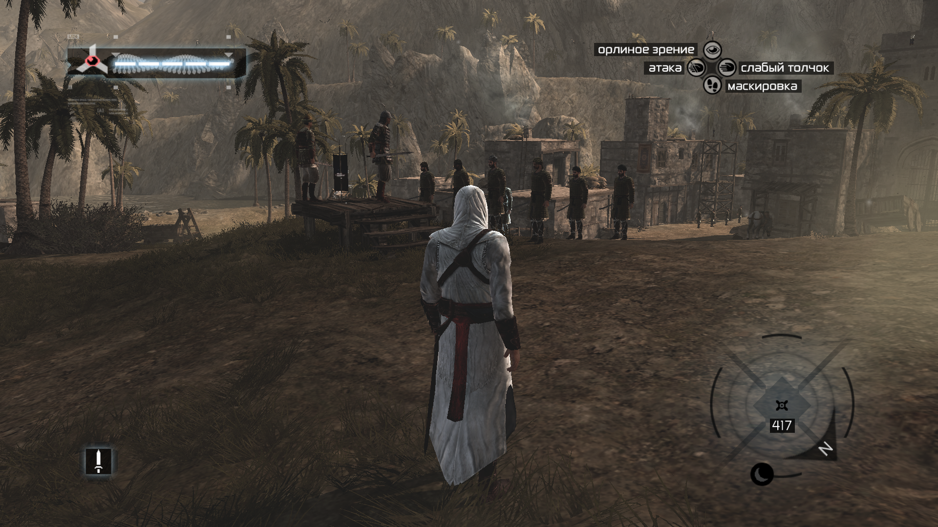 Прошёл я первую часть, в целом игра понравилась. Хотя есть достаточно косяков, ближе к концу игры стражи очень много, из-за чего у меня припекало, в конце вообще заставляют в открытую сражаться с кучей врагов, паркур неплохой, но местами кривой, особенно раздражало, что в сражении сложно мышкой выделять противника, заданий мало и они повторяются постоянно, возможностей тоже никаких особо, только выполняешь поручения и убиваешь, города выглядят похоже и квадратно, но 2007 год всё же. Спасибо хоть цветовой фильтр у городов разный. Сюжет неплохой, была какая-то интрига, хоть я и знал концовку. Ещё понравилось, как отношение братства к Альтаиру менялось постепенно. При убийстве последних целей постоянно палился, не знаю почему так. В общем, хорошая игра, особенно если учитывать, что это была проба пера, хотя она всё же кажется несколько пресной и устаревшей. Сейчас буду проходить историю Альтаира с псп, джава версию и испытаю удачу с андроид версией. А там наверное сделаю перерыв, пройду что-нибудь другое, чтобы меня от паркура уже не тошнило, и на свежую голову запущу вторую часть, насчёт неё у меня высокие ожидания.