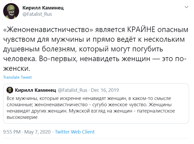 И вот мы вынуждены жить в одной стране с этими ненавидящими нас и абсолютно нам чуждыми женщинами...