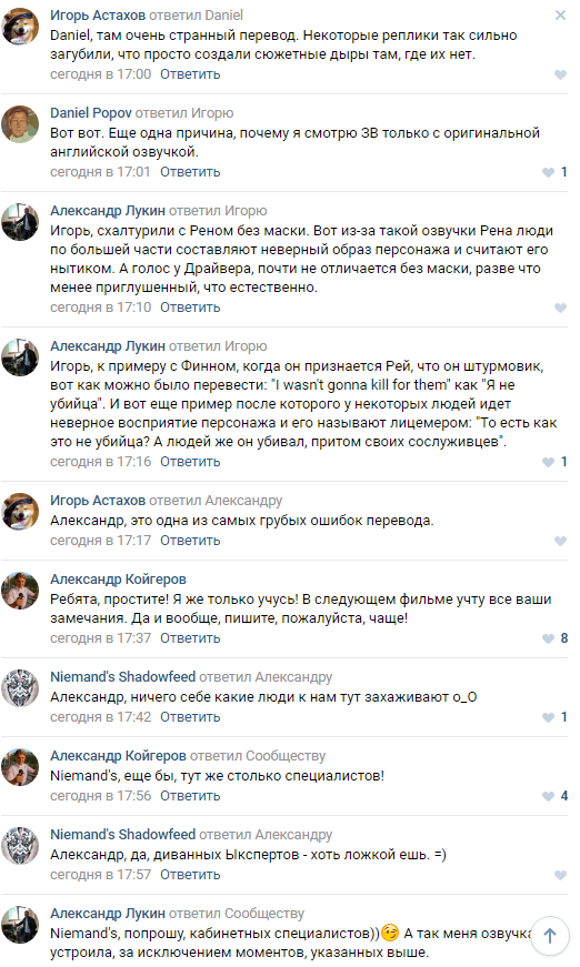 Жирухование нормальное, очень даже интересно. Но все равно всем похуй, что Кайлуха зарубил батю. Это как-то странно. Даже если Сноук дропает разум, то, ну... Получается, что чувства к матери направили его на путь истинный и освободили от чар Сноука. Всю девятку Бен с Люком будут пытаться вернуть Рэй на путь истинный? Люк в конце концов сопливо пожертвует собой и скажет, что настоящий ее батя это он, потому что он трахнул ее мамашку.