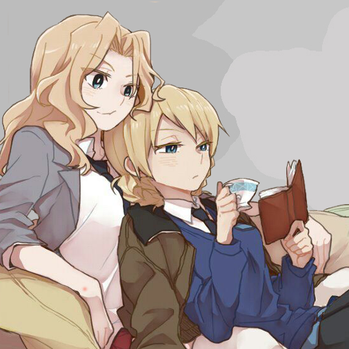 Хорошие гёрлупанзу арты. Но мне больше нравится стандарт ЮкаринМихо, тем более в манге(основной намёками, а в комедийной прямо в лоб) что чувства нашего кудрявого заряжающего танкового всезнайки более глубоки чем просто дружба.