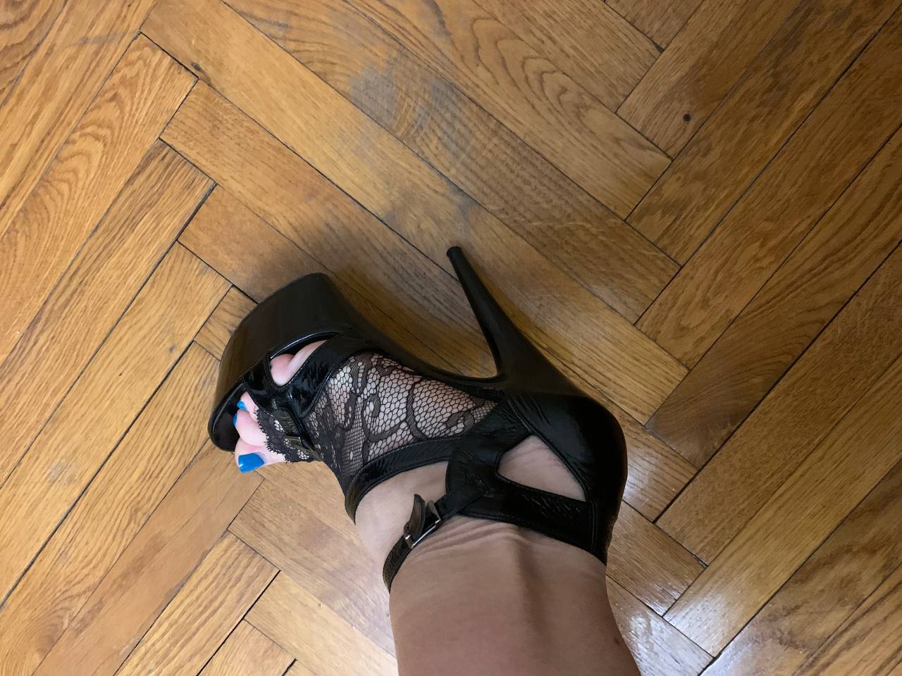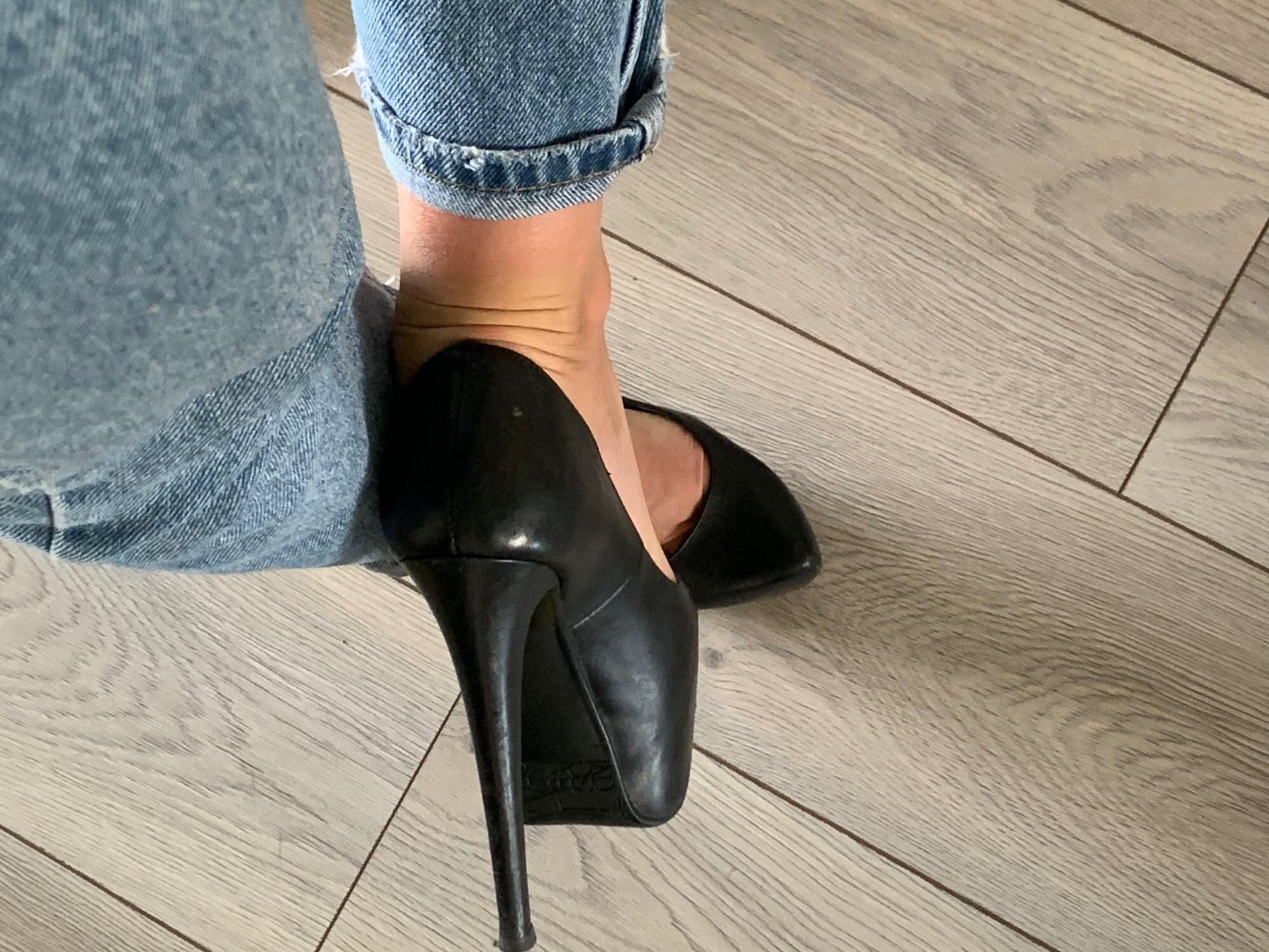 В честь перекота конечно нет, для своего удовольствия немного поохотился на черные кожаные туфельки. И в этот раз добыл идеальные как для меня по своей кондиции. Красвиые , изящные, со следами на стельке и отчетливым приятным запахом туфельки на шпильке