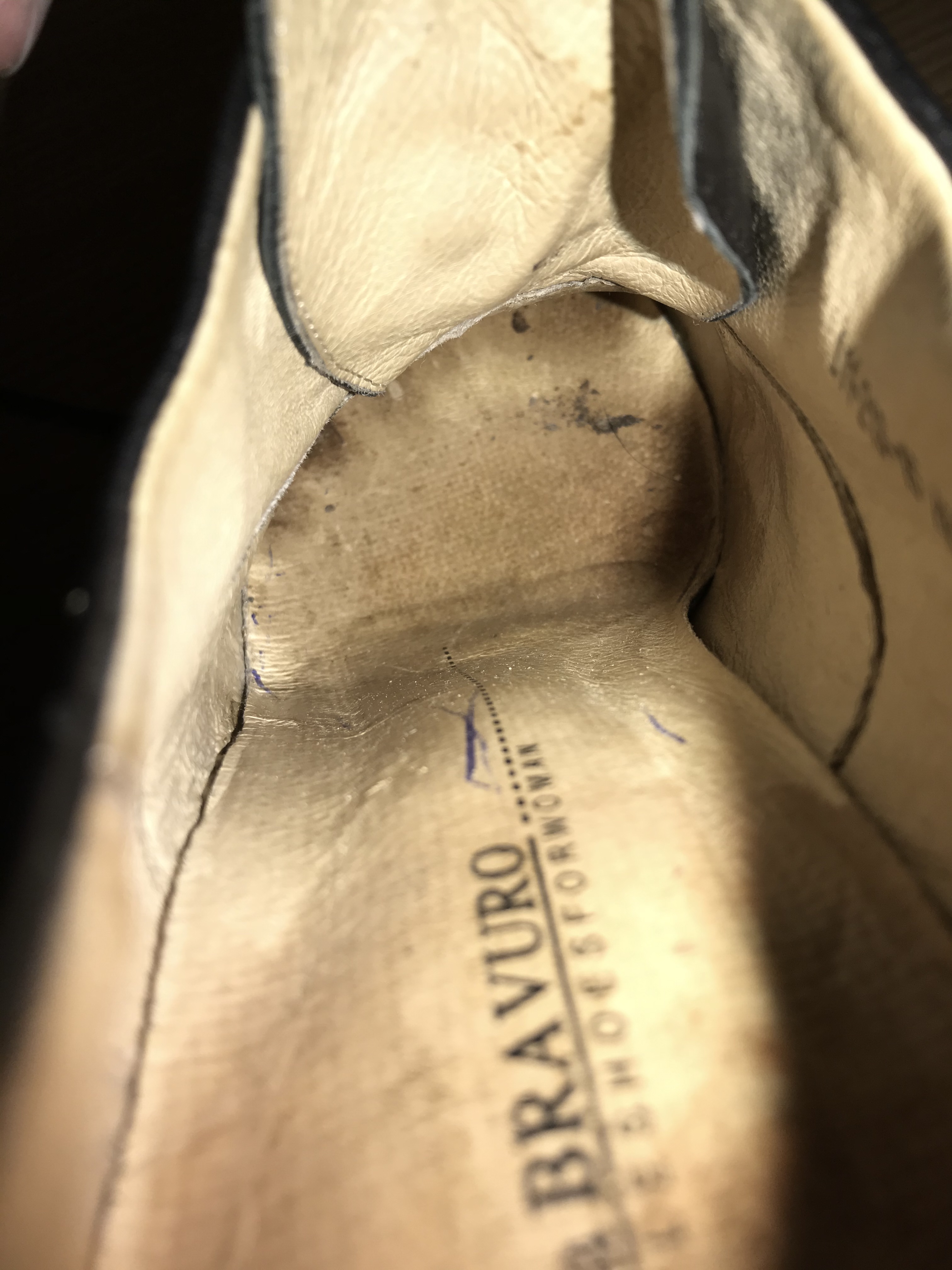 А вот с подошв я знатно прихуел. На подошвах висели куски утоптанной грязи. Видать она когда-то давно прошлась по земле, но та не отвалилась, а утрамбовалась до состояния камня. А потом она не стала чистить свои туфельки, и отдала как есть. Я со счета сбился, сколько раз кончал, пытаясь все это очистить.
