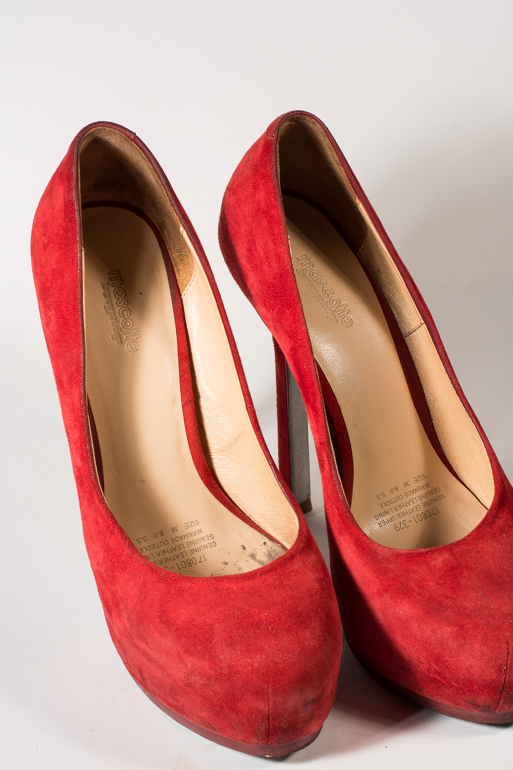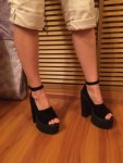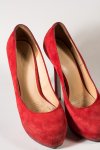 Четвертая пара - красные бархатные маскоты со скрытой платформой и охуевшей шпилькой, сантиметров в 15. Носились они немного, но при этом издают тонкий приятный аромат.