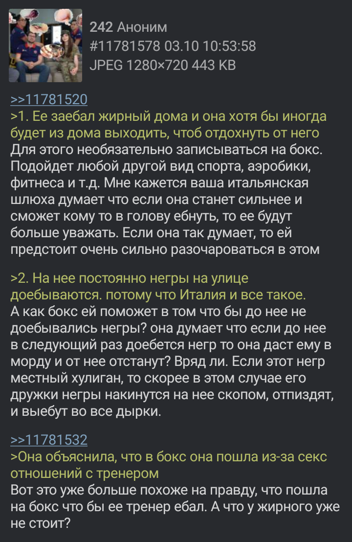 Как мне кажется это происходит из за того что полукровок не считают своими ни белые ни черные. Поэтому их гнобят обе стороны, поэтому они вырастают людьми перекачанными злобой на всех, и начинают мстить и тем и другим, и вообще всему живому. Возможно поэтому мамка отправила эту вашу карину в Италию где много негров-исламистов и где это как бы норма https://vare4ka70.livejournal.com/75776.html