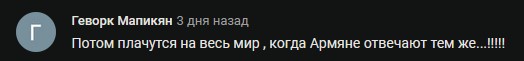 Короче, скоро вынос соросовского говна из Еревана в лице долбоеба Пашиняна, и возврат Армении в Русский мир. Карабах армяне в итоге потеряют, 7 районов будут заселены сотнями тысяч азеров, а в горах будет резервация для пары-тройки десятков тысяч оставшихся армян с русско-турецким патрулированием( как в Косово для сербских анклавов).
