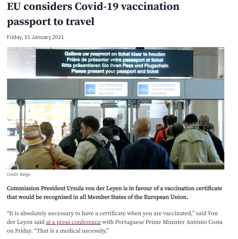 Создание паспортов вакцинации — это «медицинская необходимость», заявила Урсула фон дер Ляйен. Ранее ввести общеевропейские сертификаты о прививке попросила Греция, для которой туризм — один из ключевых секторов экономики