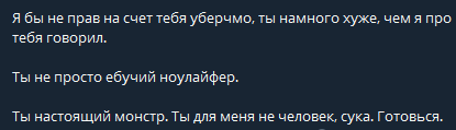 Ну блять заебись, одного шиза отправили в дурку появился новый. Теперь Стас угрожает убер куколду. Зачем? Публично угрожать не нужно НУЖНО ДЕЙСТВОВАТЬ) СМЕРТЬ КУКОЛДУ