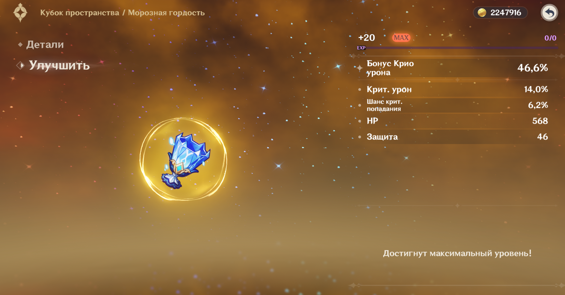 Какой же Ляо пидорас. Очередный криокальный кубок с норм сабстатами. Падает один электро, анемо и крио кал. Гидро и пиро кубков просто не существует сука, а те что существуют - только хп и деф в сабстатах.