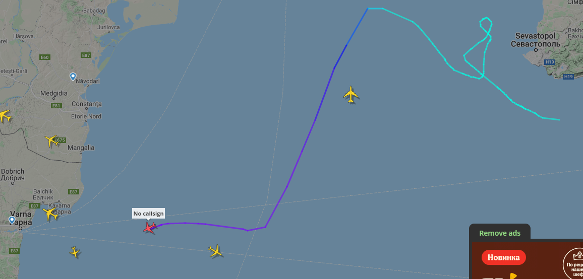В Греково-Темофеевки нет аэропортов и аэродромов, поэтому самолёт именно включил трекер на полпути
