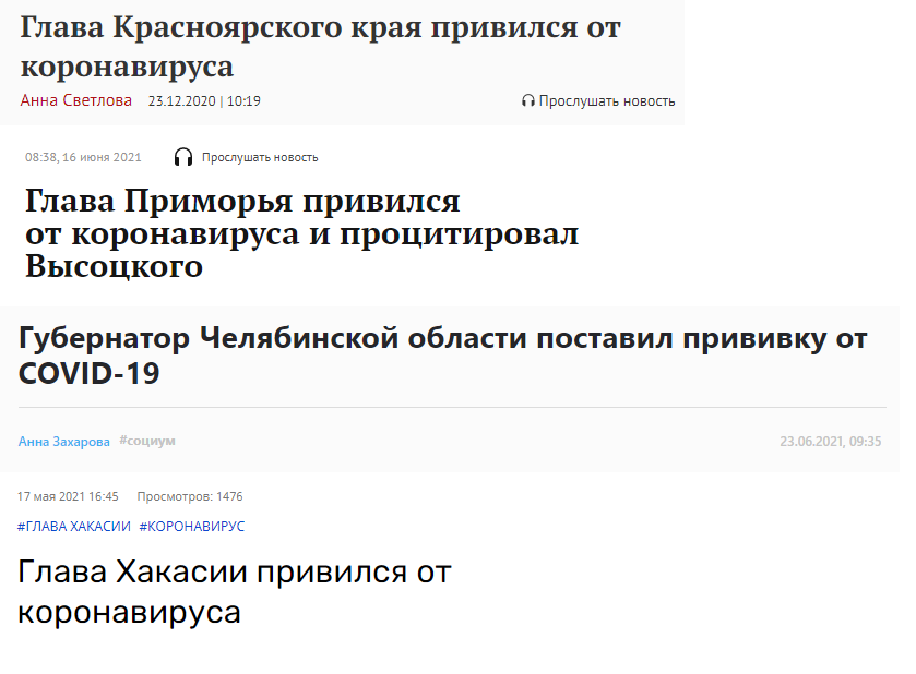 - 15.06 Песков сказал, что пока не делает прививку, у него Т-клеточный иммунитет. 25.06 решил вакцинироваться Спутником Лайт.
