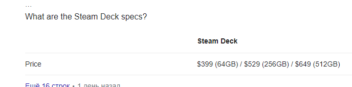 650 баксов за SSD на 500Гб + станция если хочешь подключение через USB + SD мобилковое, чтобы не удалять и устанавливать 1,5 игры вечно + Винда за 120 баксов ставится на дек, если хочешь, чтобы как на ПК + дркупи PowerBank, если хочешь автономную работу в игре больше 2 часов = 1000+ backs is coming...