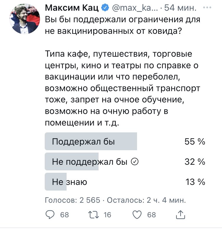 Так недавно же по методичкам было, что даёт защиту, что "нормальные люди привились и ходят куда угодно, а антиваксеры дома сидят". Или недавно смена произошла?