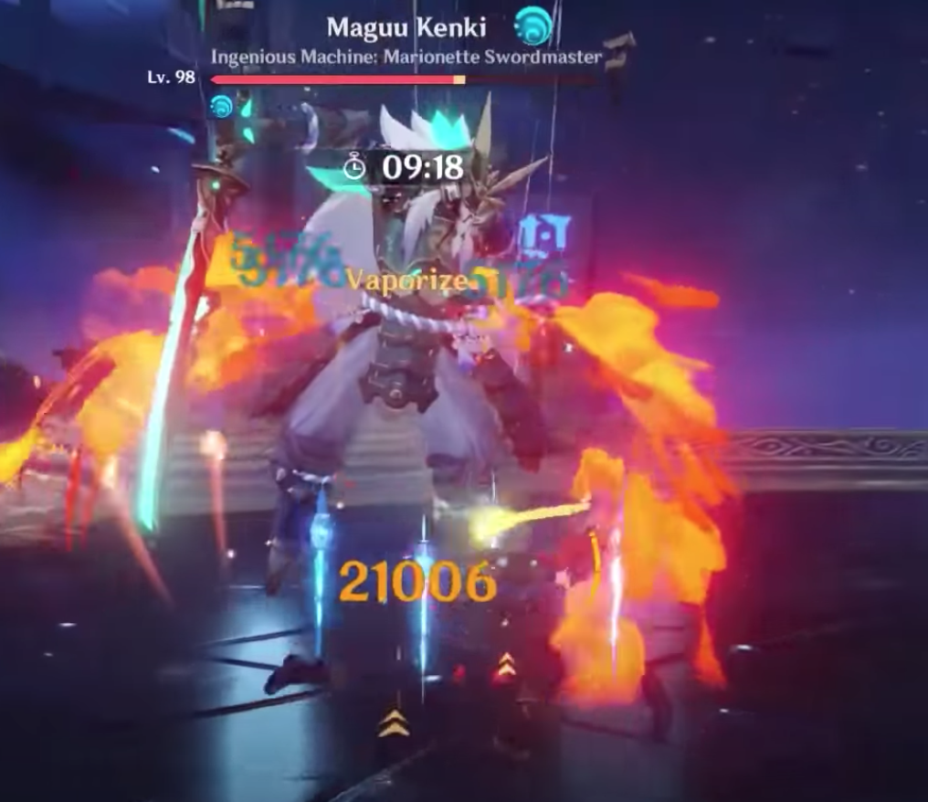 Просто Хутао еще с ульты бьет много, из-за этого она в любой ситуации будет чуть-чуть впереди.