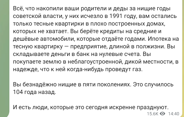 Лугабе сегодня поздравил белорусов с годовщиной Октябрьской революции. И в отличии от большинства своих речей, в этот день он сказал чистую правду. Это действительно то событие, с которого началась история белорусского государства. Вообще именно 7 ноября, стоит сделать Днём независимости большинства постсоветских республик, а Ленина ввести в пантеон главных героев. Украины это касается в еще большей степени. Поэтому меня удивляет, почему ВСУ в свой карго-культ ввели поклонение символам Третьего рейха, вместо стилизации времён военного коммунизма и Гражданской войны. «Батько наш Петлюра, центральная рада мати, за Аврору крейсер мы будем воевати.»