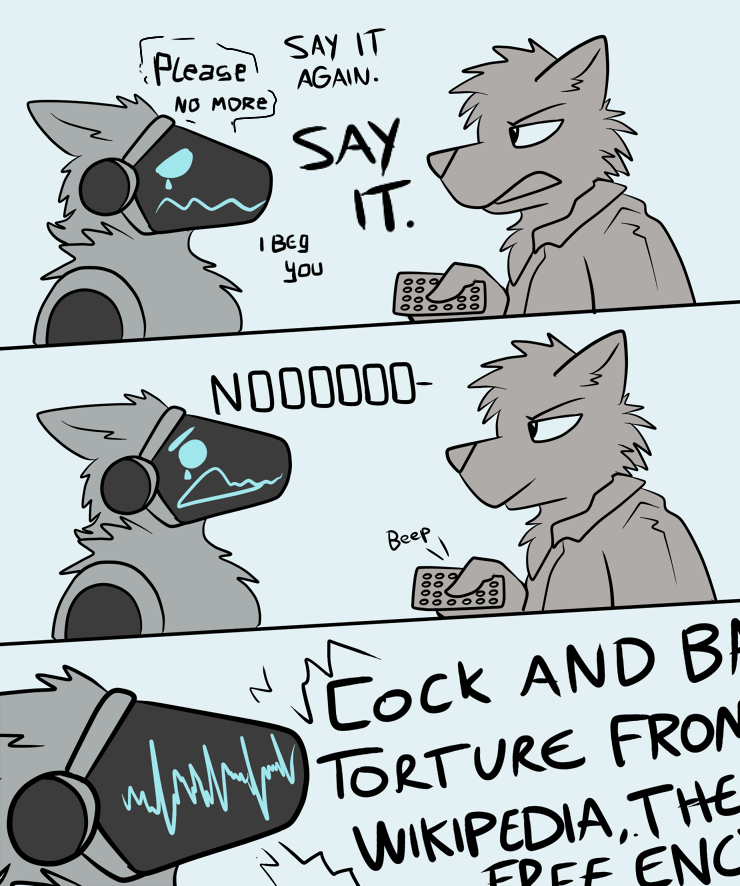 доставьте пожалуйста чёрно-белый комикс где фурри-собака спрашивает у человека, нравятся ли ему её сиськи, и когда он говорит "нет", она говорит "и это хорошо, иначе это был бы пиздец какой cringe" и на последней картинке у неё ещё прям совсем собачья морда.