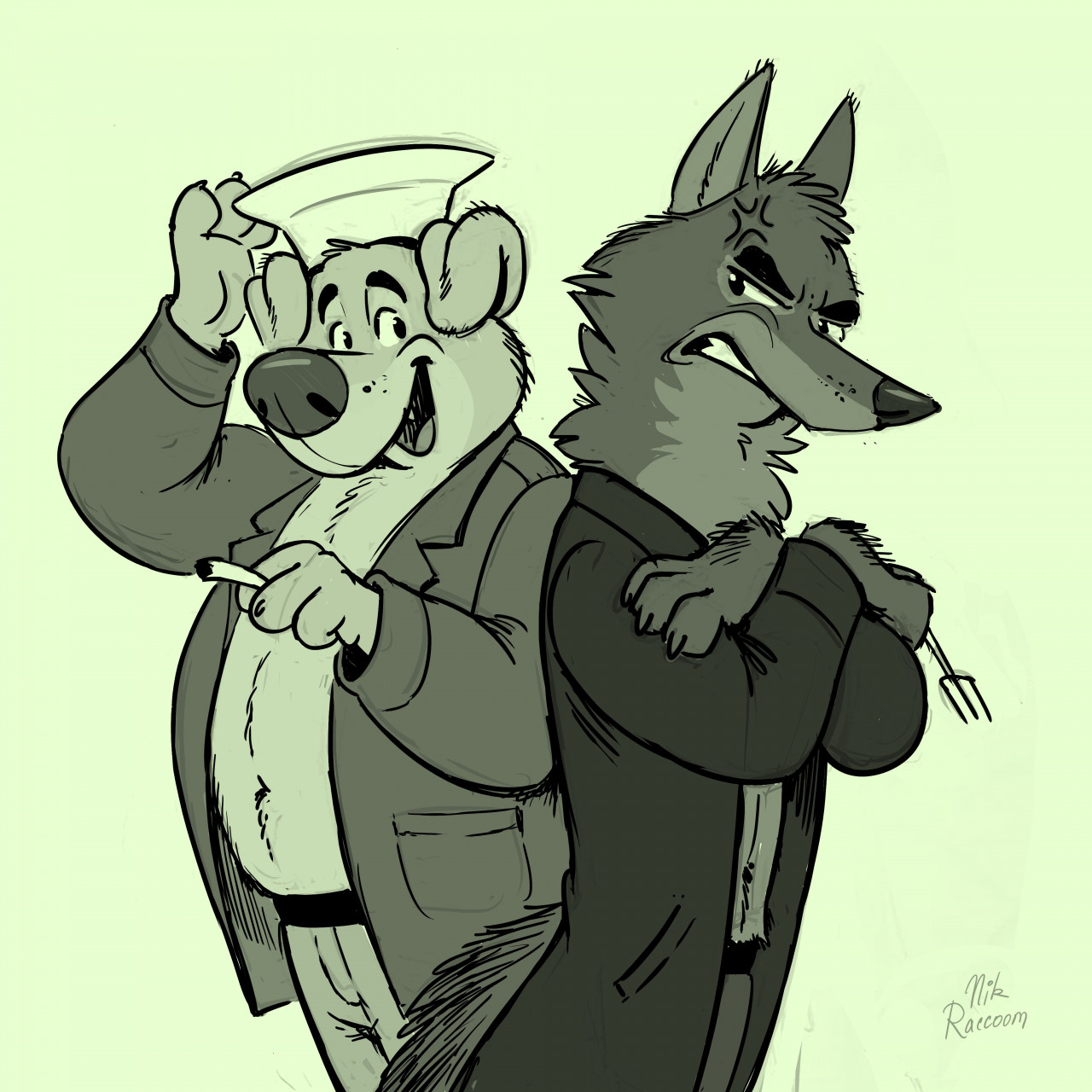 Левый: волк из оняме про борьбу хороших персонажей сказок с плохими.