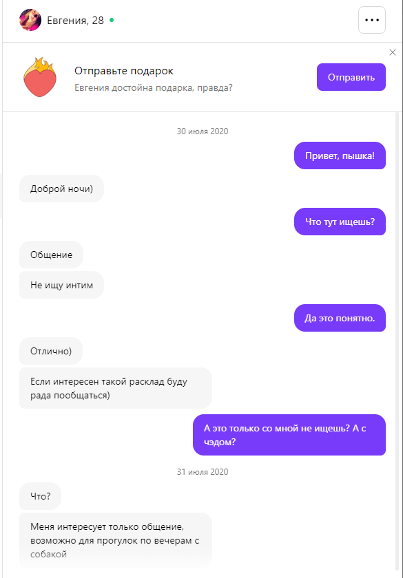 Любые сервисы «чисто для секса» это фейки, проститутки и развод спермотоксов на деньги.
