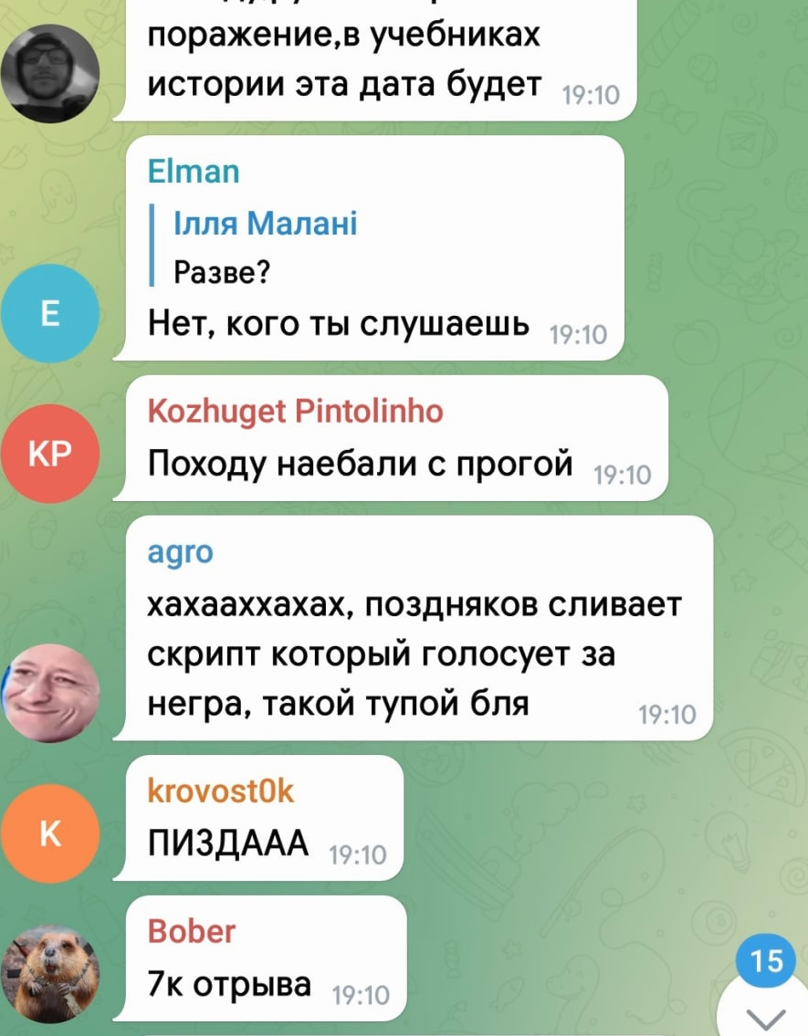 Пиздняко в своей телеге до тла ещё не сгорел?