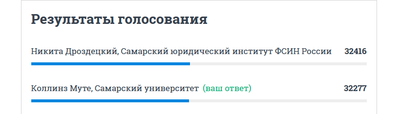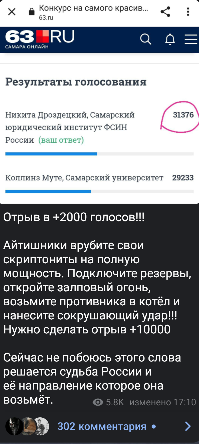 В Самаре проходит конкурс красоты, где естественно были одни нордические чеды и нигра с малым количеством голосов. Аноны как всегда решили голосовать за него ради лулзов.