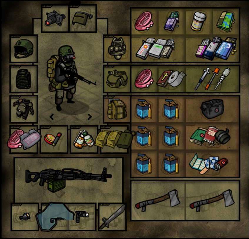>>265910965 (OP) Выбрал то, чем я умею пользоваться. Оружие - калаш 74-й, ПМ, РГД-5 - этими вещами я пользовался ИРЛ, так что самострела и ежедневной гранаты не будет. Несколько магазинов к стрелковке и россыпью патроны к ним на всякий случай. На всякий случае противогаз с фильтром, ОЗК на спину тоже. Как комбез минут за 5 успею надеть, а как плащ за 3.5, наверное. Чисто перестраховка, если очередная протечка случится.