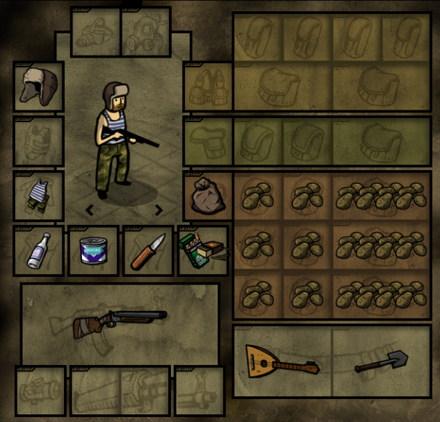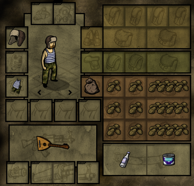 задача: собрать инвентарь, чтобы выживать 5 дней(t+15°) и 5 ночей(t+0°), потом ты окажешься дома в своей уютной сычевальне или в сырой земле