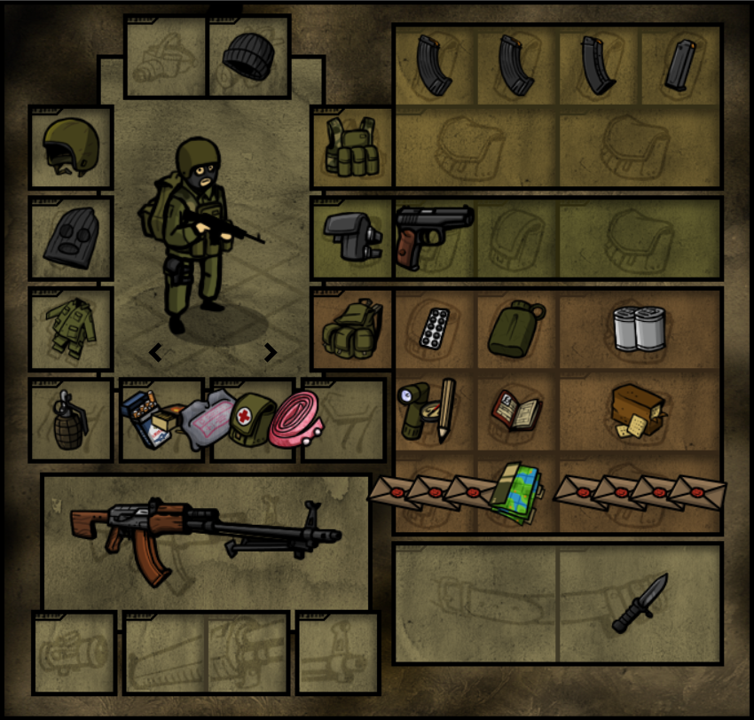 Ратник и шлем лутаю с откинувшегося воене. Калаш и ргдшки там же. Еда - первое что в пятерочке нашлось (или что там в Украхе). остальное в принципе всегда при себе (мультитул сиги спички куртец рюкзак) Очки уебищные, но у меня зрение подсело, другого варика кроме как в очках гонять не вижу.