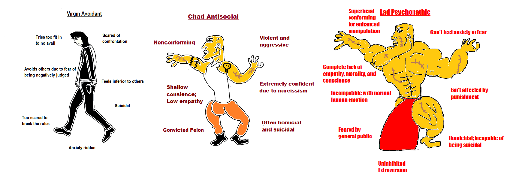 >>1393602 Нет, нет, нет, социопат чед даже здеся, антисоциал это он сто пудов, все же в большинстве мемах он чед получается, а значит это правда, как мемам то не верить?