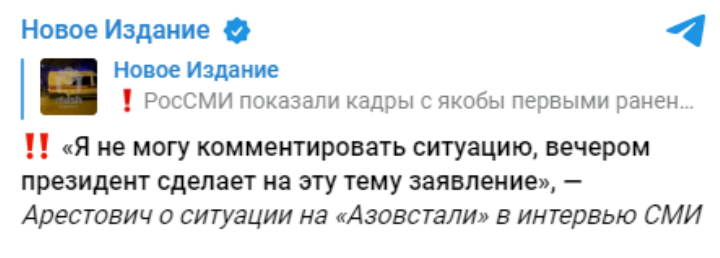 Хуясе. Арестович не нашел, что спизднуть, спихнул все на зелю. А зелебоба до сих пор в ахуе с театральной труппы, которая пограничный столб таскала и с ним перемогала с видеопруфами.