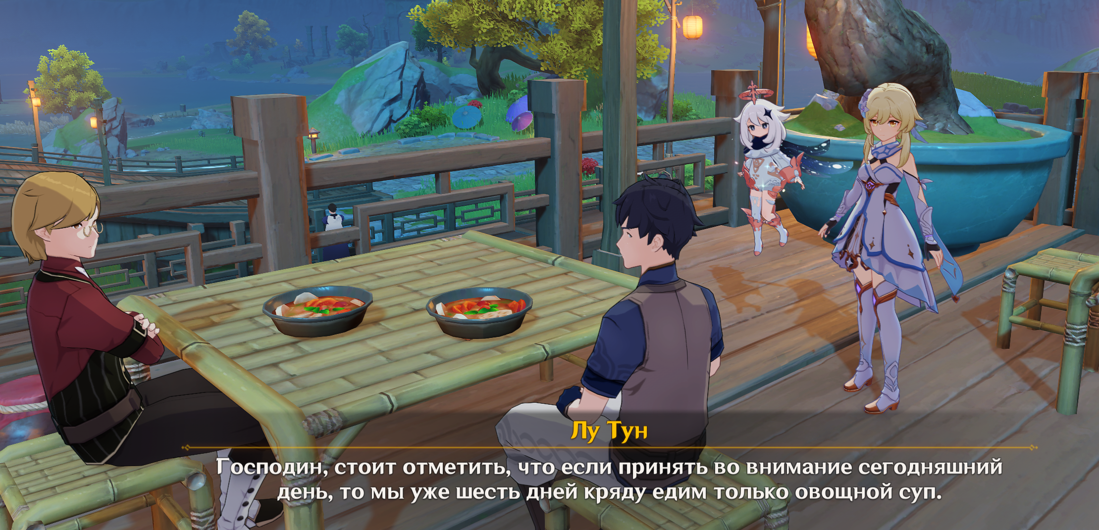 Хотел тут с японской озвучкой поиграть и понял что это невозможно. Хоть голоса многих героинь обрели человеческий тембр (привет Паймон), всплыла проблема связанная с русиком. Он не сильно качественный и очень часто персонажи на английском говорят совсем не то что написано в субтитрах. Но с англюсиком я это хотя-бы понимаю и улавливаю недостающий контекст.