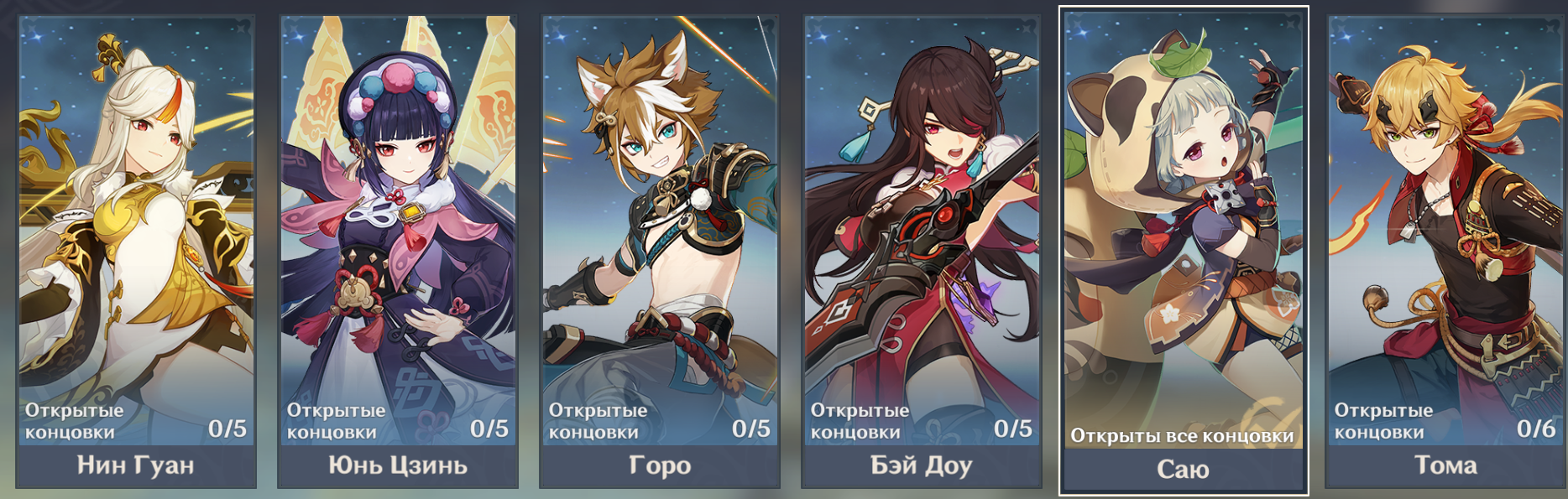 Кручу тех, кто нравится, но так докрутилась, что из дд у меня только Сяо и вот Итто недавно выбила. Остальные сплошь саппорты: Чжун, Альбедо, Венти. Сейчас я понимаю, что мне нужен Кадзуха, если не он, то нужны для бездны ХуТао или Аяка.