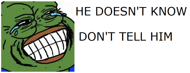 >>43629214 Ты же в курсе что если пити начнет поджимать, то я смогу начать покупать подписки? Но я этого делать не буду, моя победа будет честной! Недавнее покрытие фатального провала для экономики в виде пропуска стрим ивента не в счет, в квизе тоже не буду участвовать для честности.