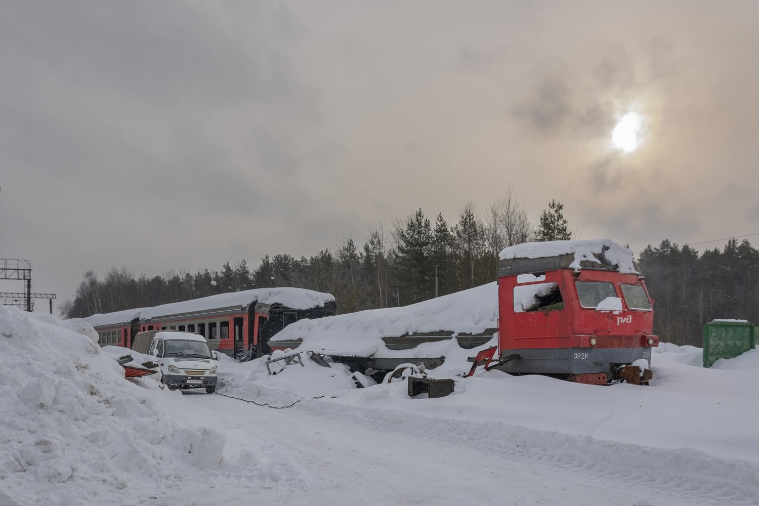 Останки электрички Ср3 в виде сарая, близ железнодорожной остановки "Железнодорожный" (Железнодорожная), Пермь, СВЖД. Отправляйте туда отряд ферроэквинологов для фотодокументирования останков и бортового номера.