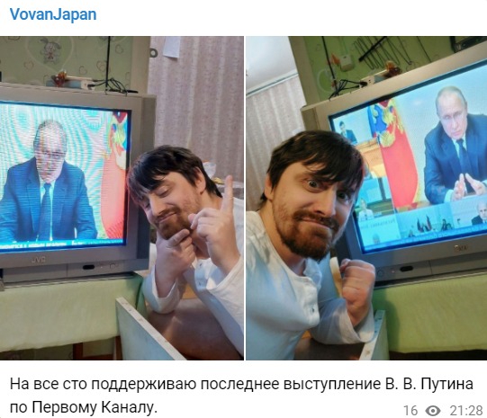 В настоящее время активно топит за Русь и спецоперацию сидя в Питере, планирует или уже заделал второго Бобенка.
