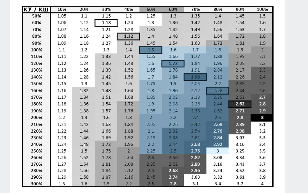 Кроме банального умножения и сложения не применяется ничего. Составление подобной таблицы - задача, выполнимая любым человеком хотя бы с зачатками мозга.