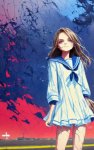 anime little girl in sailor uniform, schoolgirl skirt, ((((panties under skirt)))), highly detailed, smiling face, painted by makoto shinkai А где трусики?!