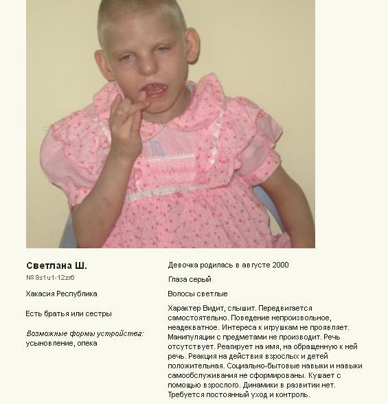 И кому придет в голову усыновлять такое? Они все равно до 5 лет не доживают.