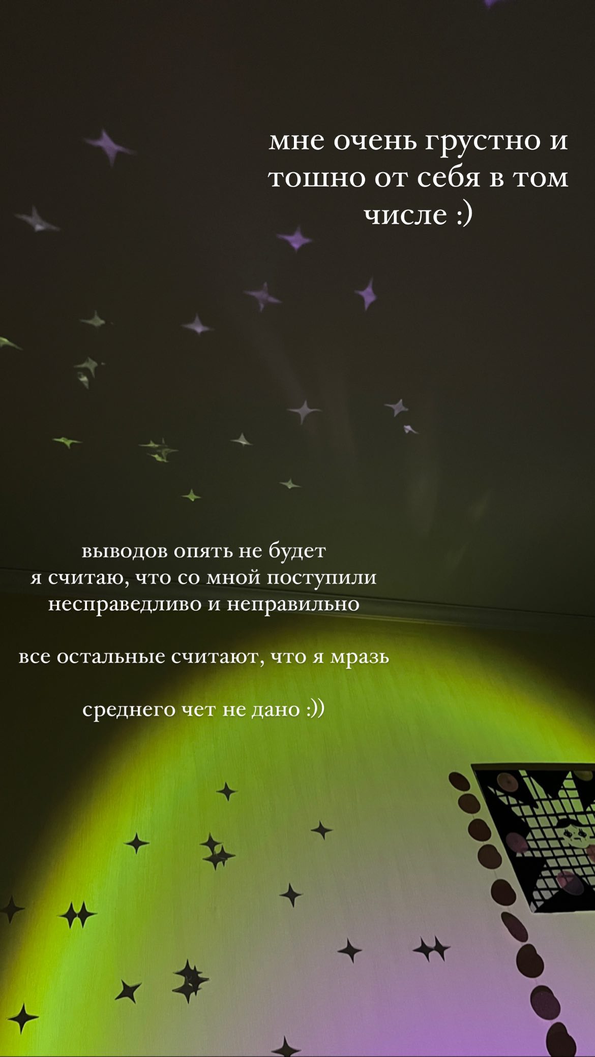Мне больше ничего не остаётся,я работаю и работала над собой столько сколько могла И я наверно никогда не стану обычным ,приятным человеком который интегрирован в общество Как писала тут одна тян про таких : "оказывается,ярлык не отклеивается"