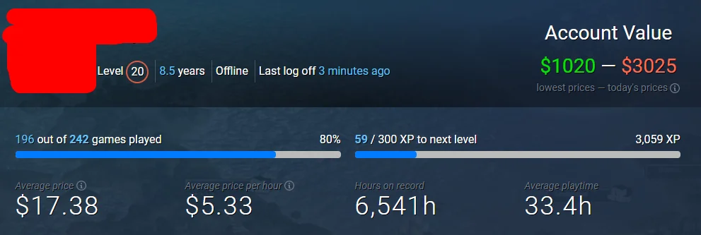 >>281599081 Нормально так продал. Надеюсь достаточно окупилось. У меня 6 лет аккаунту. До него был какой-то аккаунт (который я создавал в 2013-ом, когда все вдруг устремились в доту 2), но я к нему потерял доступ давно и там почти ничего не было.
