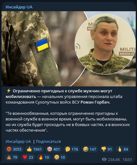 ⚡Ограниченно пригодные по состоянию здоровья могут быть мобилизованы