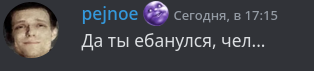 пжх ты? чё хочу то и пощу в правилах не прописано напр. если я запощу что влад путин поздравил тим спирит с победой на инте ты не должен такое удалять т.к. это не политика вообще в дисике мне набери я те расскажу как модерировать эту борду ты ж залётный олд 05.04.2023