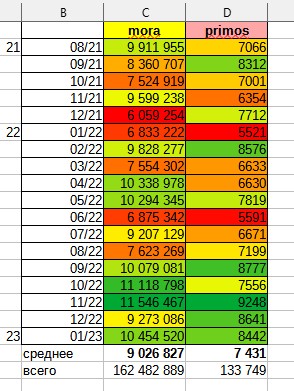 Вот статам моих заметок путешественника за последние два года. В среднем за месяц получается 7400 гемов у фтп. То есть за три месяца соберется 22к гемов, что приблизительно равно одной лимитке. За год 4 лимитки у фтп, если проебывать коинфлипы.
