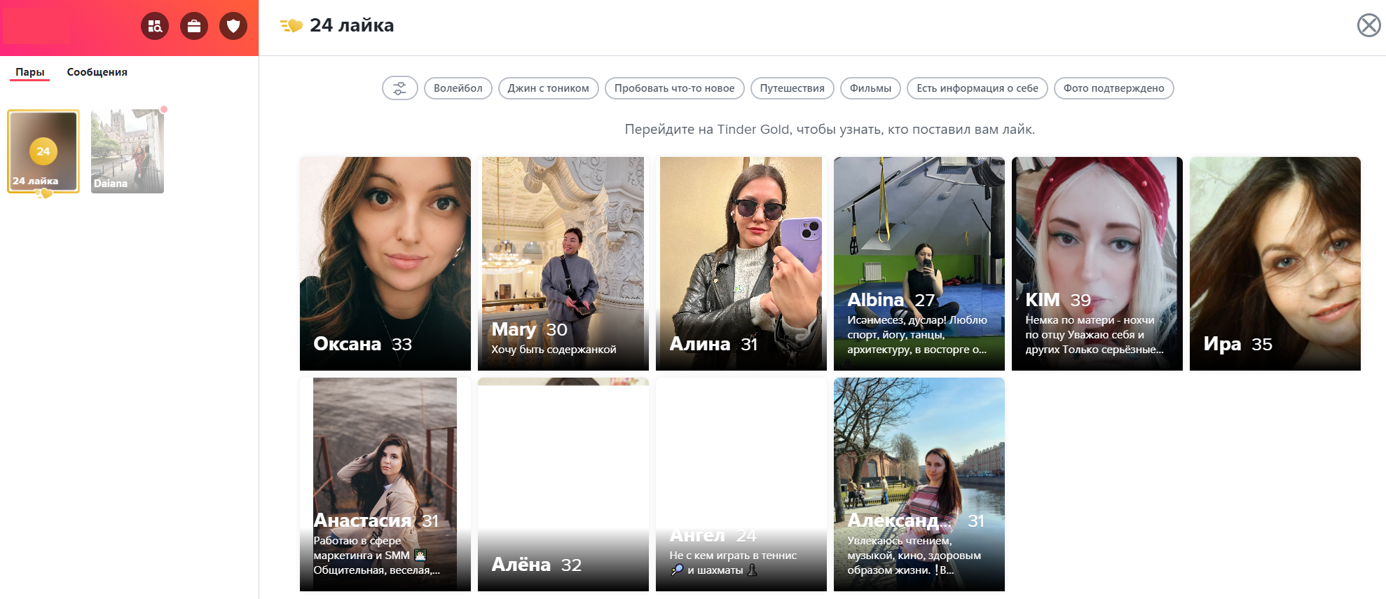 У них в основном интересы типа "поход по барам", "спа" и т.д.