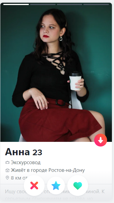 Из тысячи анкет, если не больше, я выудил всего трёх, которых общаться со мной. Лишь с одной дошло до Телеги, но и она вежливо слилась (что довольно обидно, поскольку она была привлекательна и имела похожую работу).