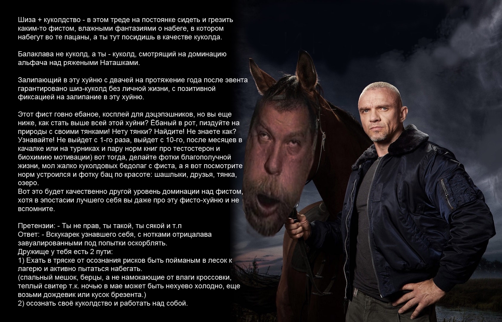 - В ночь с 25 по 26 мая предположительно активизировалась фистолахта, призывающая применять летальные или наносящие тяжёлые увечья ЧОПам и фистунам. Предположительно, они хотят, чтобы набегаторы совершили преступление по 111 УК РФ и написать заяву. Однако, на стороне врага есть ЧОП, который сам наносит тяжкие увечья пленным. Имейте это ввиду!