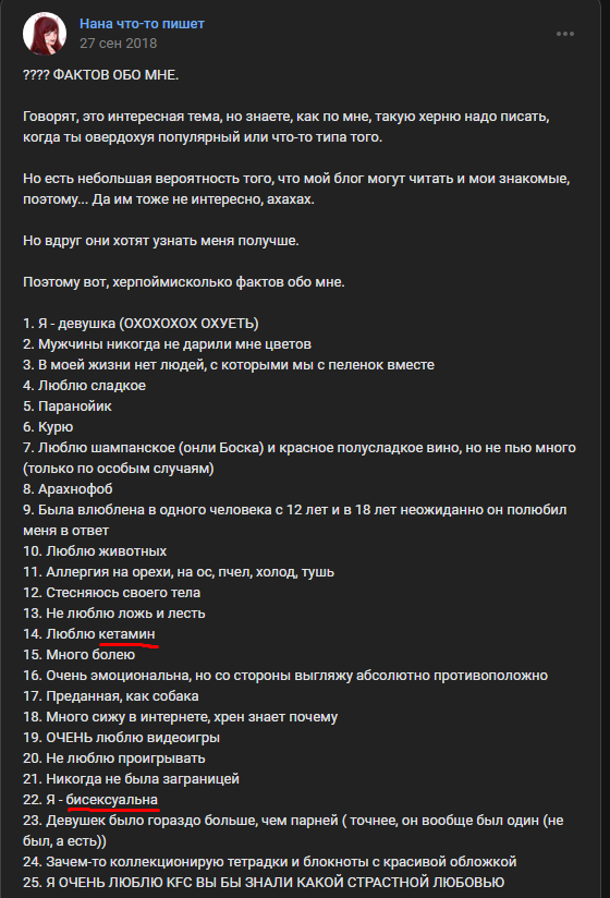 Какой же пиздец блять. Нашёл профиль человека с Kiri в нике, женского пола, с друзьями из Уфы, с точно такой же датой рождения, который учится на информационной безопасности/программировании, смотрит аниме, играет в игры и визуальные новеллы и имеет пинтерест. И знаете что? Это мужик блять. Который служил и сейчас продаёт запчасти для лады. Въёбано около двух часов жизни
