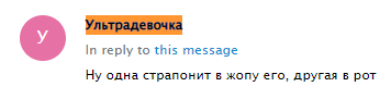 >>288200602 >Я сюда месяцами не заходил иногда. Никак моя вера в рынок пизды не пошатнулась за это время Тогда ничем тебе помочь не могу. Верь дальше. >На вкус и цвет фломастеры разные, но по-моему, она ебейшая красавица, без рофла. Ясен хуй, что не модель, но это вообще не обычнотян. Кому-то и Дашка красивой кажется. А так Козявка самая обычная тян, подобных на улице хватает. >Ну и плюс, я же говорю, имеет какие-никакие интересы и хобби, и интересуется философией-социологией, судя по её простыням. Там дискурс уровня "пьянка, кухня, 3 часа ночи". Тогда мы тут все ниибацо философы. >Бабам её уровня любую припиздь простят, лол Тряпочки Умпа-лумпы - да. >Так был же шебм, где он кальян курит, разве нет? Пруфов не было. Странички куна тоже.
