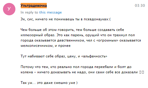 ХРОНОЛОГИЯ: мы приходим к ним, и начинаем их стебать про 190+ делаем мемы сидим угораем А ОНИ РАЗРАБОТАЛИ ХИТРЫЙ ПЛАН Они направили к нам куколдов, и они форсят казюлькину, теперь когда они поняли что форс козюлькиной канул в лето, пытаются начать форс софьи блять анон какой же ты дурачок, тебя переиграли еще в самом начале, как вы могли повестись на это? пиздец аноны еще сидели: "двачеры победили тухлых фемок, туда селёдок", а теперь толпа промытых анонов поклоняется какой-то казюлькиной и хочет лизать ей пяточки, а они сидят у себя в закрытой конфе и угорают над нами