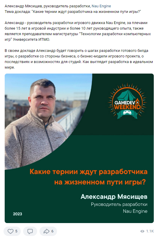 Друзья, на этих выходных будем в Новосибирске на конференции Gamedev Weekend – Александр расскажет о терниях, ожидающих разработчиков на жизненном пути игрового проекта. https://vk.com/gamedevweekend2023