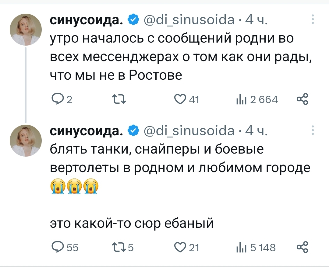 Жопр, ты где сейчас? В Ростове? Отнесла бульончик бойцам Вагнера?