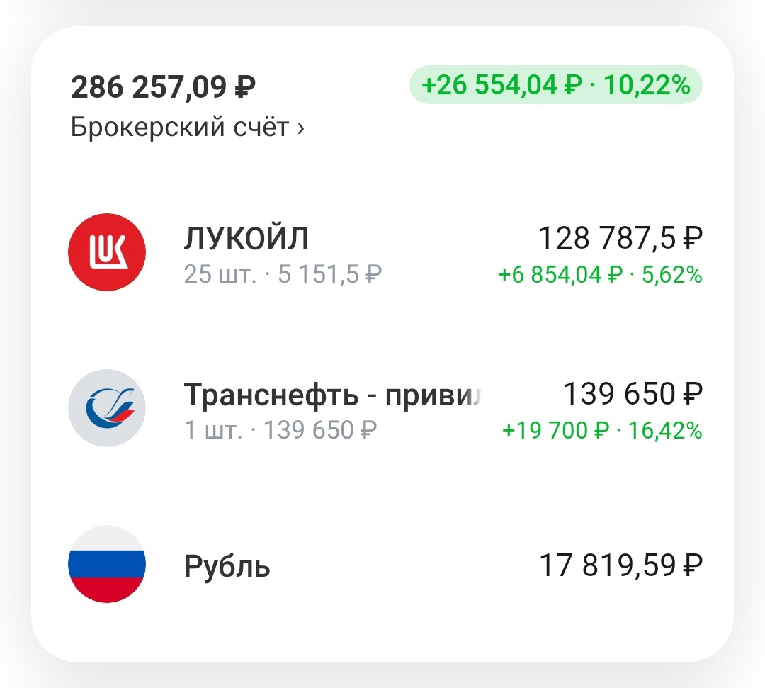 >>289262687 (OP) Небольшая часть лежит на карте, ~300-400к максимум, остальные деньги делятся примерно на две части, первые 50% в акциях, вторые 50% в крипте, по большей части просто стейблы сейчас, то есть в баксах